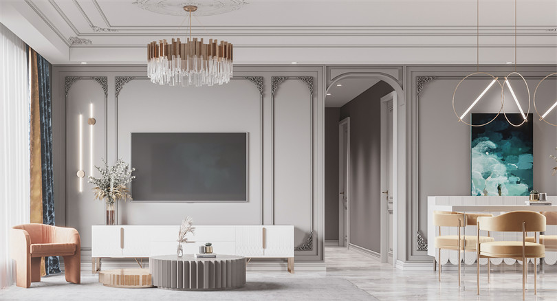 經(jīng)過設計磨合最終確定法式輕奢,保留法式原有的線條元素進行簡化并加入現(xiàn)代時尚的不銹鋼輕奢元素加以碰撞,這種柔中帶鋼的優(yōu)雅體現(xiàn)的淋漓盡致。