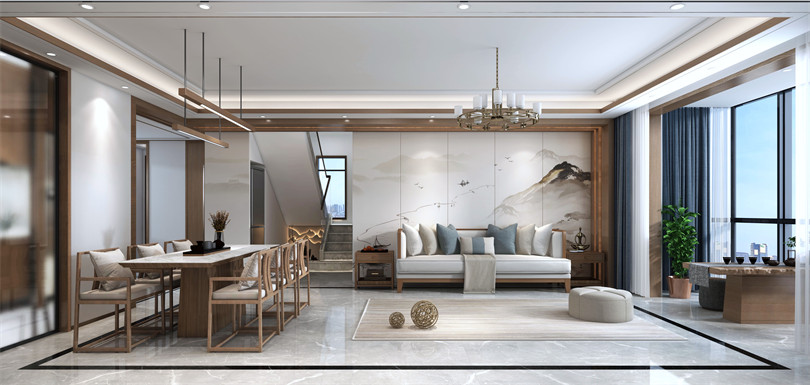 廣州科城山莊復式新中式風格裝修效果圖