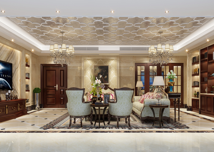 嘉興恒大御景半島五居歐式風(fēng)格裝修效果圖