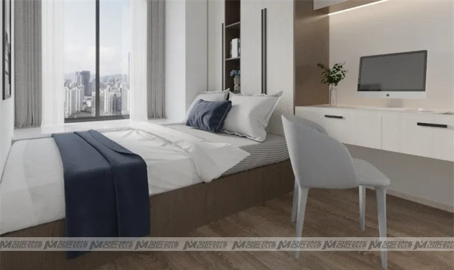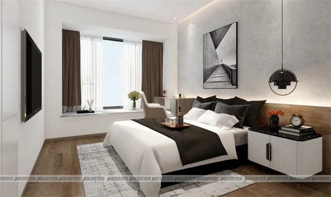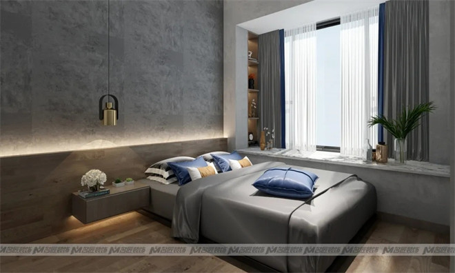 步入臥室,以木質(zhì)背景墻做滿床頭,搭配前衛(wèi)的裝飾畫,北歐風(fēng)灰色調(diào)墻布,立體吊燈點(diǎn)綴,整體自然協(xié)調(diào)。清晨的陽光從窗戶透進(jìn)來,灑在了潔白的被子上,這片刻的溫柔令人沉醉。