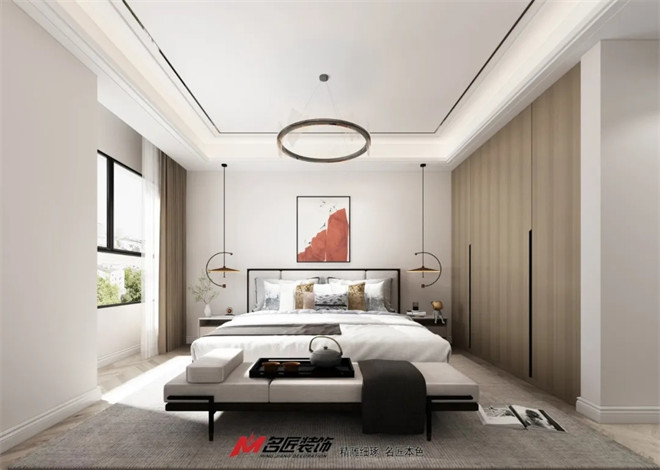 運(yùn)用舒適的白色,搭配略深的木色調(diào),加上稍許靈動的線條,營造出清新典雅,獨(dú)具質(zhì)感的視覺效果。