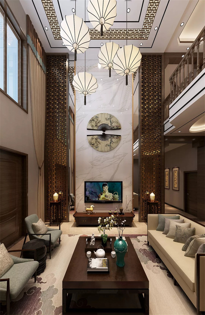 綿陽(yáng)云星花園別墅新中式風(fēng)格裝修效果圖