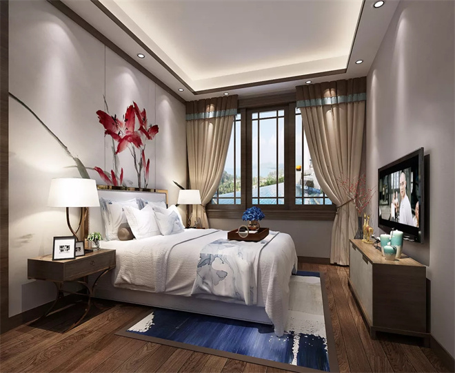 新中式臥室作為現(xiàn)代背景下的古典演繹,呈現(xiàn)出不同的風(fēng)雅意境,寧?kù)o致遠(yuǎn)專屬于中國(guó)的美學(xué)