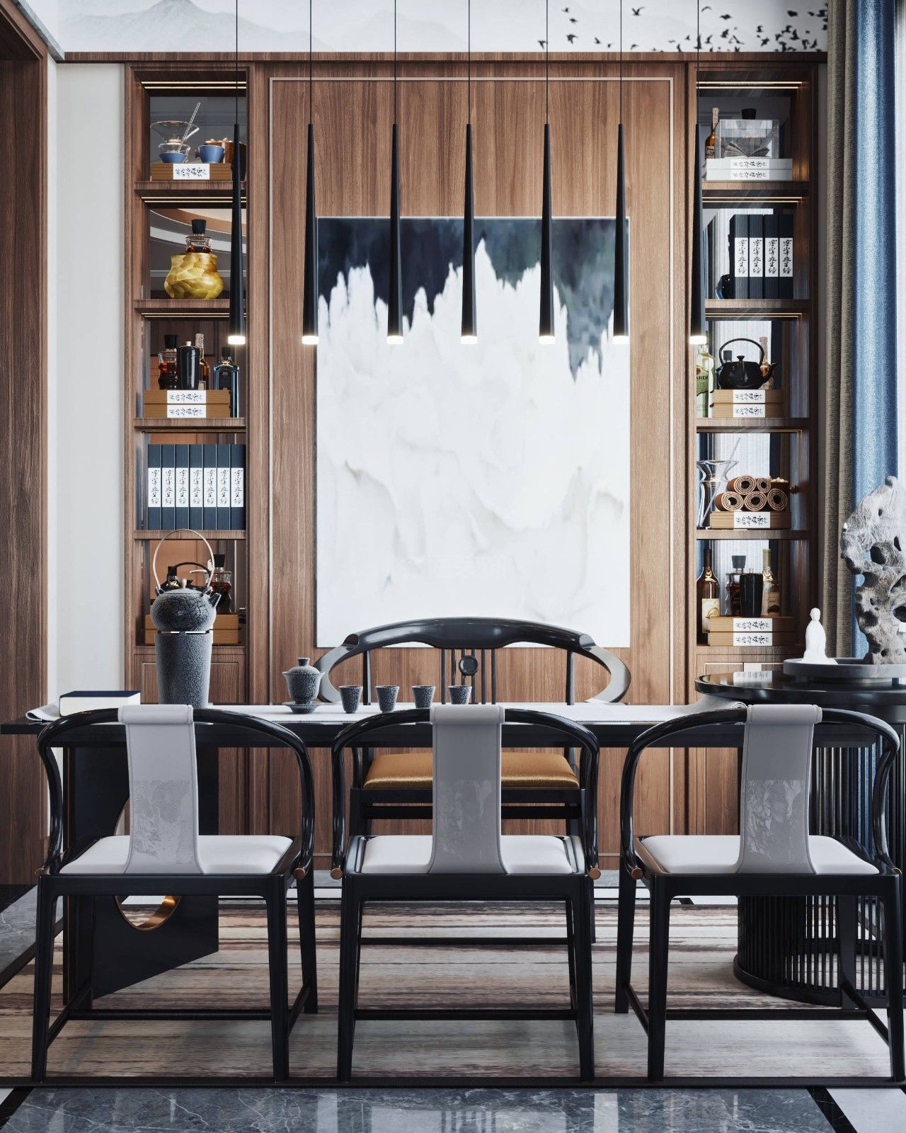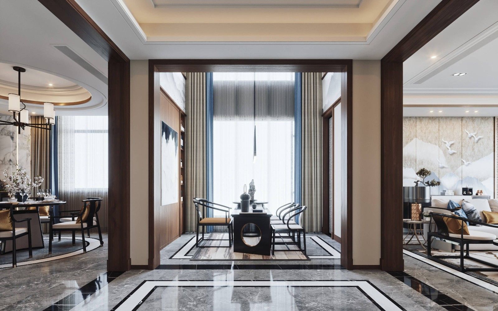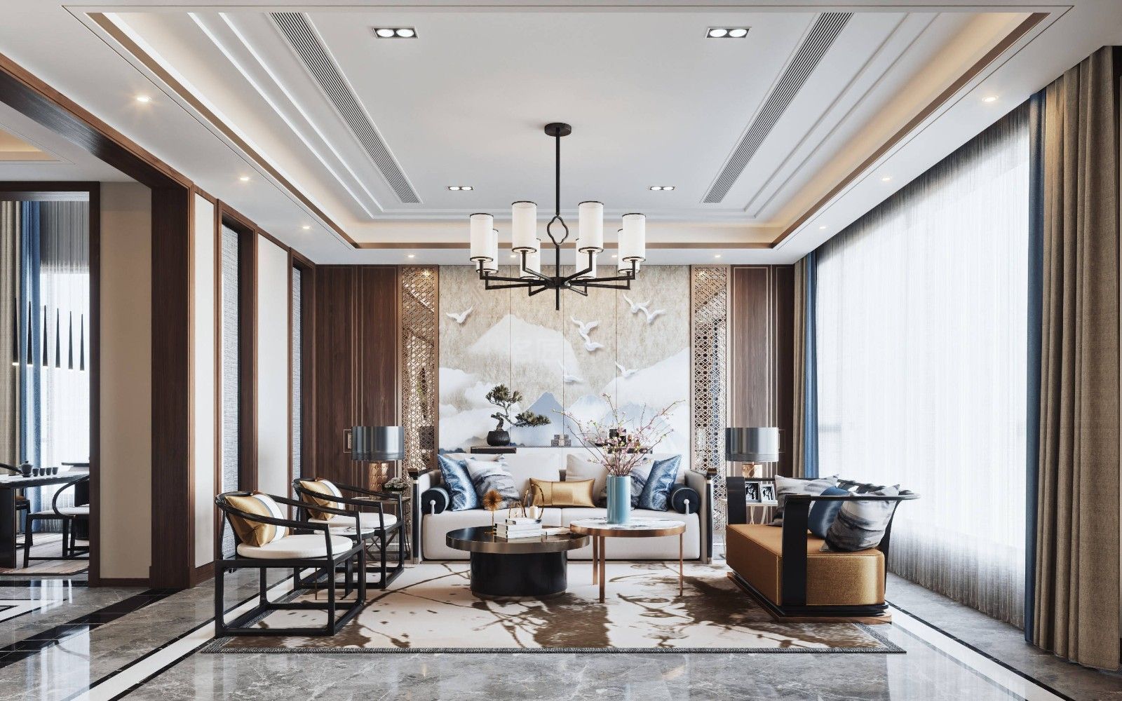 陽江碧桂園別墅新中式風(fēng)格裝修效果圖