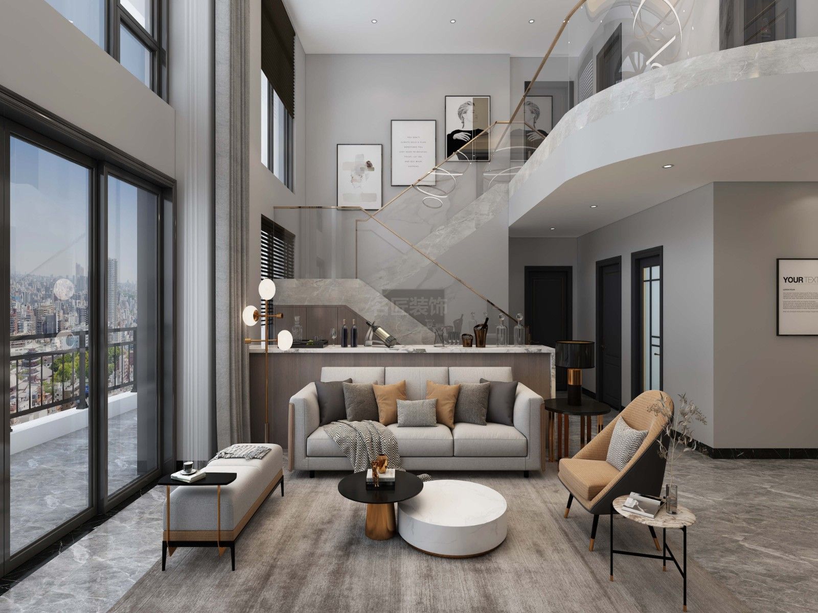 廣州101-200平米輕奢風(fēng)格峰景大夏室內(nèi)設(shè)計效果圖
